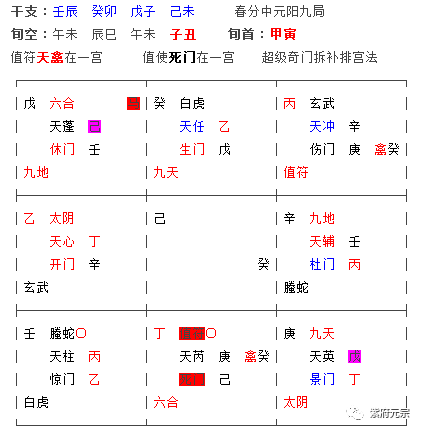 一宫之内符号众多,上有神盘,星盘,中有门盘,干格,下有卦宫地支,皆可组合以读象,见后例。