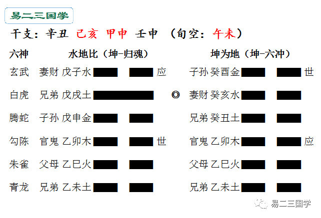 化神反克:五爻发动,化亥水来耗自己,化财耗自己,亥水得月建助旺。