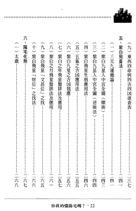 筆者常見坊間一些不肖之士,仗著有一點似是而非的風水觀念,欺騙相信 風水卻又不懂風水的善良民眾,所以本書首要目的便是講解陽宅的正確觀念, 以科學的角度來探討陽宅,讓看過此書的人不會再被不肖的風水師所騙。