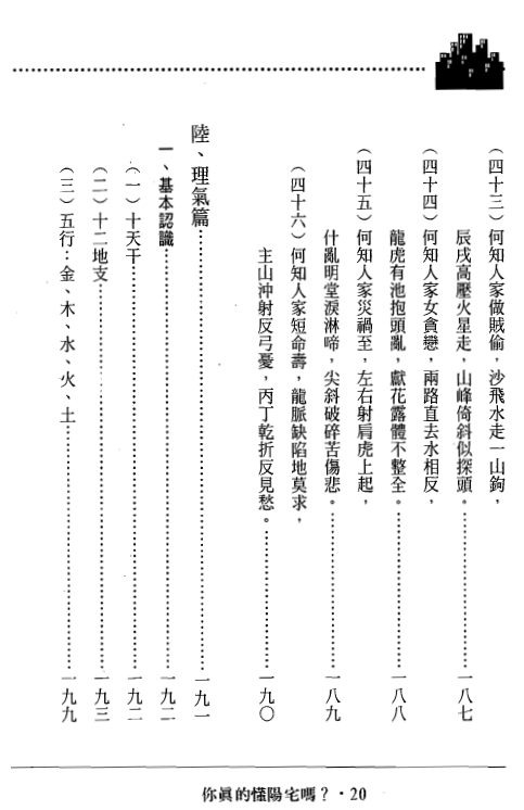 『何知經』是古代流傳下來的重要經典,坊間的書多是把原文抄錄而已, 本書將『何知經』逐句用白話及圖例一一詳細說明,讀完此章節勢必對讀者的 陽宅功力有很大的提昇。