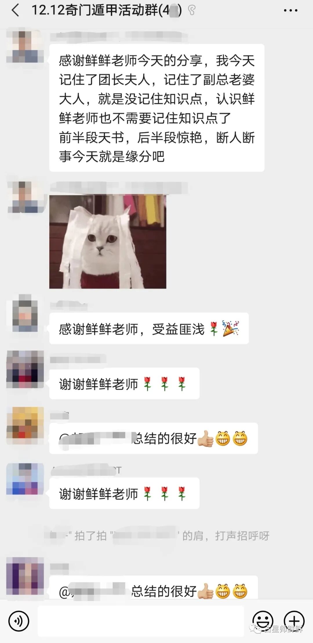 奇门可精准论断参与者的个人信息体现了“学了奇门遁,来人不用问”之精神。手机号码格局的判断也是非常扎心,一个官格的手机号码哪怕只是一个小学生用也是个班干部,得师长青睐;长大了使用这个号,也更是同龄人同一批进公司的人中提升最快的那个人。现场有一位女嘉宾给先生看手机号,一看就是官格,反馈是最布队中最年轻的*长。还有一位当时报了自己手机号却自称无业,很是低调。这一看就是大富贵的号码格局啊,藏住很难的。一下子看到这么多有趣的号码,我本人也是分外高兴。