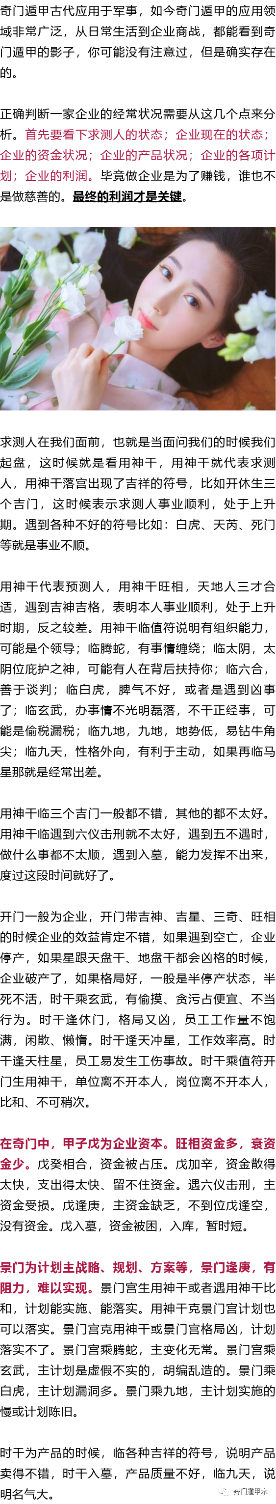 奇门遁甲知识:通过奇门遁甲正确判断一家企业的经营状况