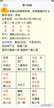 1、问病先看天芮宫,天芮落离宫逢空乘玄武,为不是正常病而是玄武作怪,伤门为受伤,天盘辛在离宫自刑,辛加己为奴仆背主,并且和日干通气,为有牵连。