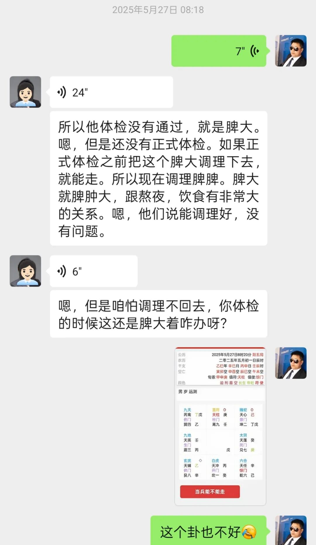 背景:求测者的大儿子,想着大学毕业之后去当兵,在3月份的初次体检时,还是各方面条件都好。 但在后面的体检中,出现了发现脾大的问题,这一点影响到身体条件入伍问题。所以求测者计划是在尽快在医生指导下,从饮食等多方面入手,尽快把脾大的问题解决掉,进而在最后的一次体检机会中,谋求获得通过。