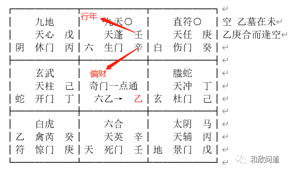 断:六乙受困于中,惑之象也。遂寄于空墓之乡,占者必因感情受冷落而生疑。奇仪相合逢空,婚姻形而不实。