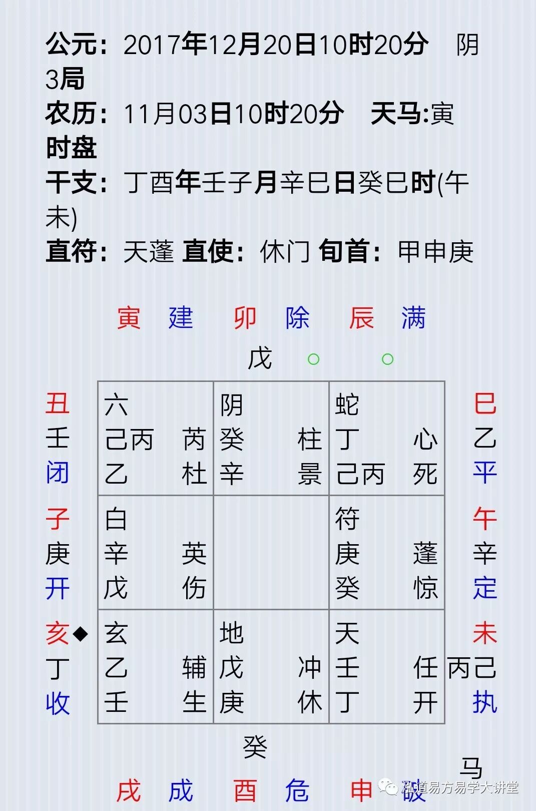 落坐后我打开奇门局时间2017年12月20日1O时20分
