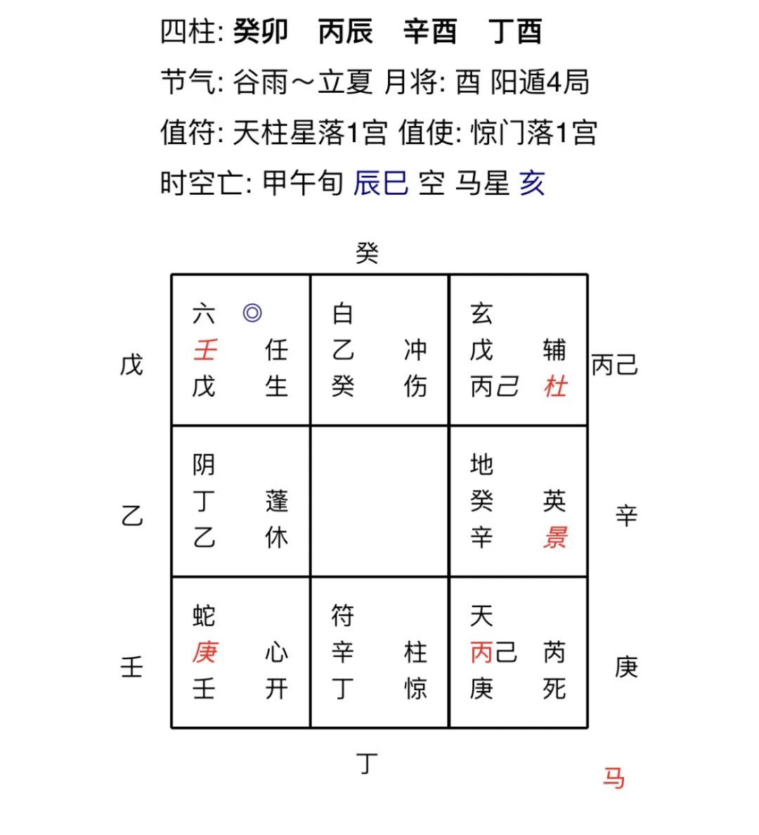 根据奇门六亲断法:财落坎宫、与生门宫相生。六合为多,壬戊是小蛇化龙。好的格局。