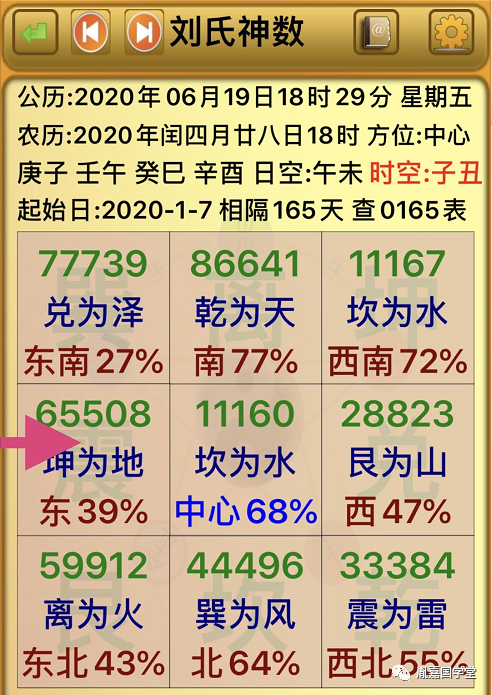 同样跟上次案例有关联,儿子打电话约我19日下午一起回一趟富顺老家(村里)跟他妈妈办事。我吃了午饭就把装备收拾好等他来接我,等了半天不料他磨磨蹭蹭的来接我的时候都接近傍晚6点过了,我说今天不去了明天再去,他说不行今天非要去不可,我的第一灵感告诉我,对这个时间出远门感觉有些不妥,但我又拗不过他还是去了,慌慌张张就出门上车,正处下班高峰道路不畅也算正常,我栓上安全带就用【刘氏神数】软件起上一卦,时间是2020年6月19日18:29分,请看盘面3-65508.的数据信息: