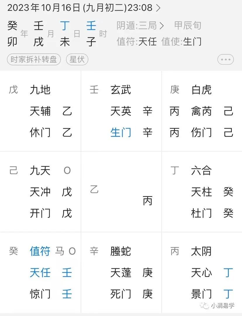 此局为星伏吟,干伏吟,门不伏吟,这里很容易出现误差,因为伏吟有重复二次之象,但是结果从单一的象来取是很容易出现误差的,