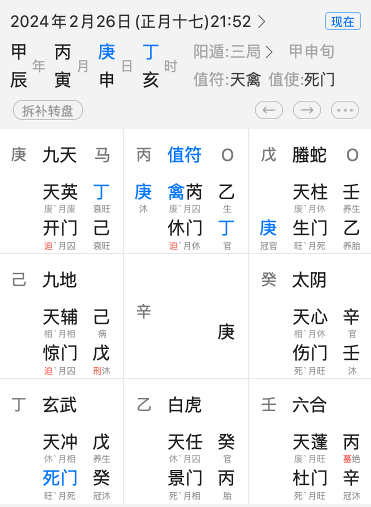 但是,想要真正做到这一点,却难如登天,一方面,需要对奇门遁甲的构成体系了如指掌,还要对阴阳变化、顺逆规律、符号组合有深入的认识,同时还要对能量强弱的变化清晰明了,但光有这些积累还不够,根据本人经验,还需要有那一点“灵机”,这不是玄之又玄的东西,而是多年经验积累下来后,对上述符号、规律、能量融会贯通时的那一点“灵光乍现”。