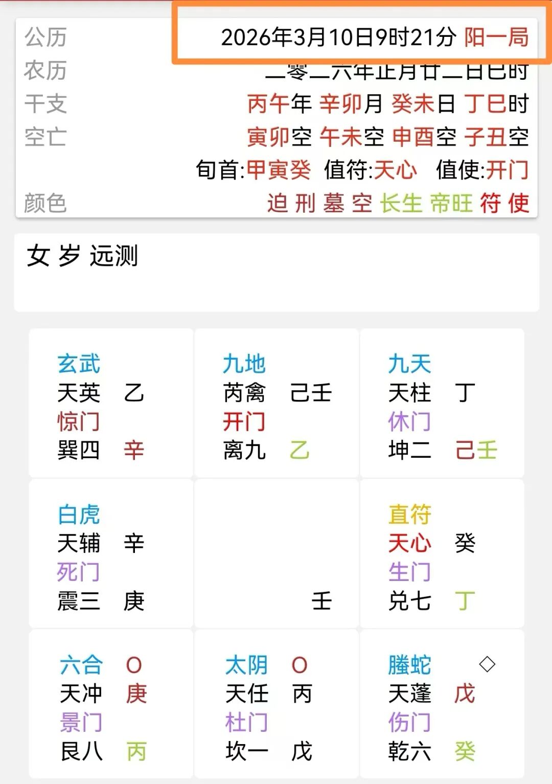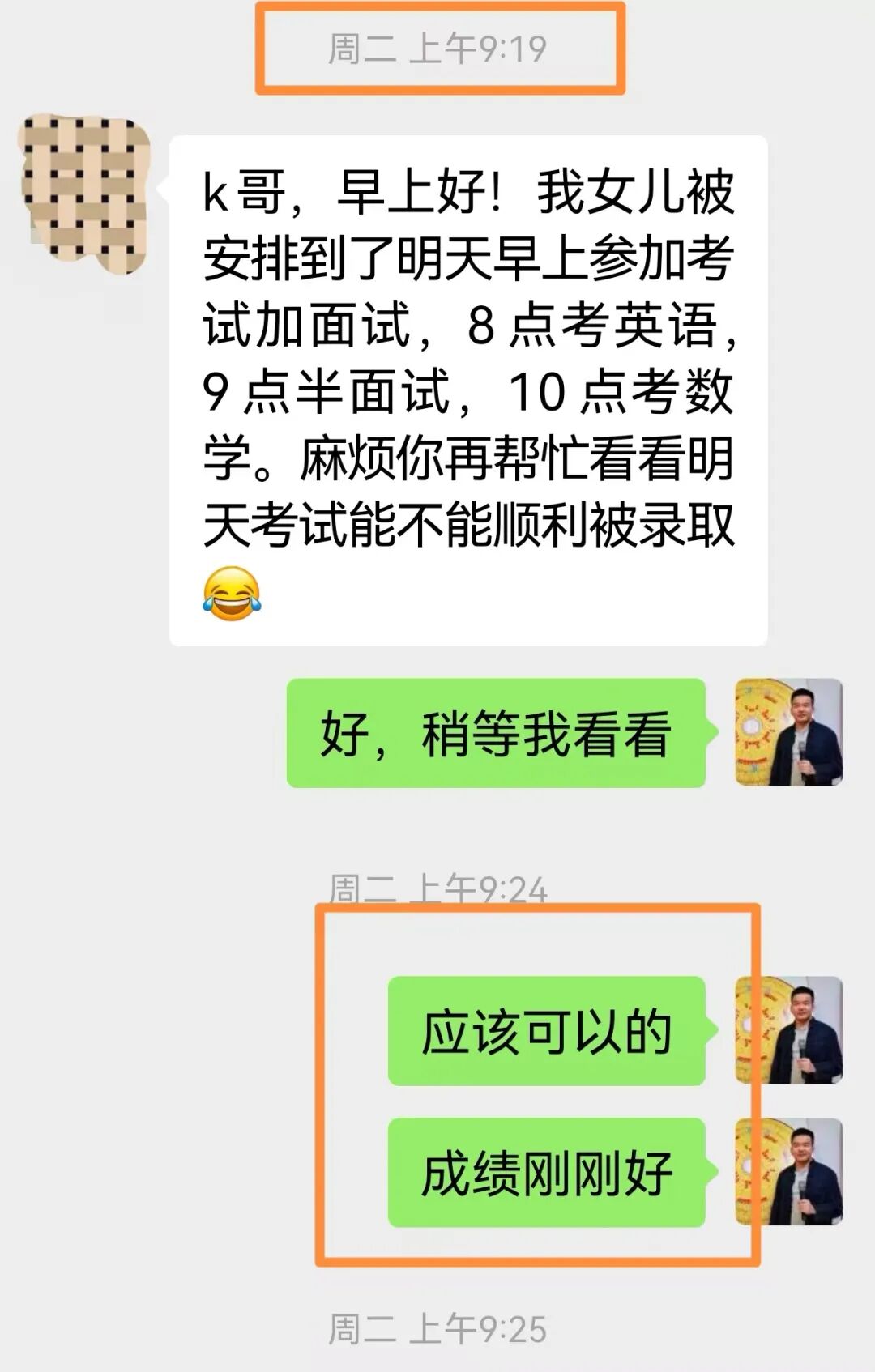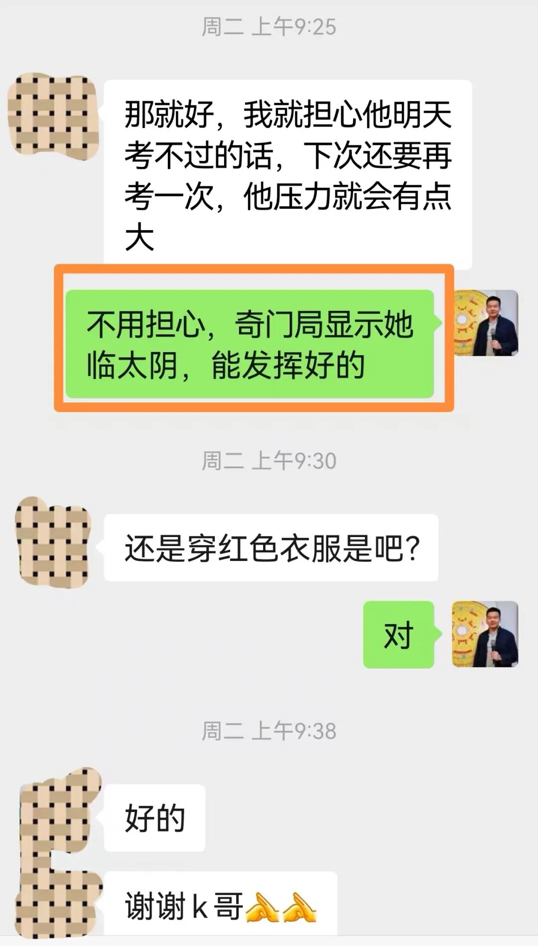 2026年3月10日上午,朋友女儿要考深圳最好的私立国际学校,问我是否能被录取,我根据问测时间起局,根据奇门局断可以被录取,并指导考试当天穿红色衣服;3月13日下午,朋友反馈女儿被录取;详情请看下图:
