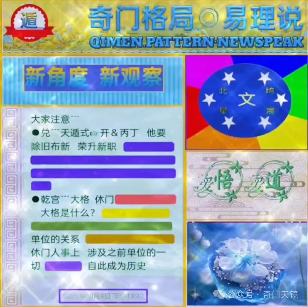 案◙〖戊〗—《金函》谓之“未仕致仕官” 即国家层面相当于“储君”;机构层面相当于“准新官”;组织层面相当于“候选人”、“提名人”、“预备人员”;按《十干本旨》为“相关门户权属负责人”;◙〖己壬〗— 《金函》谓之“地纲高张”;按天镜系统的《十干本旨与交仪分析》 此格视为换届、换界之整饬、部署; _籍此我们不难理解主题格局 是相当的开门见山、平铺直入 并成为主导全局的核心标题立于坤二宫。 _《金函》谓之:“华盖蓬星 贵人禄位 常人平安”; _《太极☯️天镜•六相简旨》谓之:“天法临于众望所归之选 即天选良才为函”; __父母宫持格式〖癸乙〗 而普京又是该卦指向人 所以父母宫的寓意 你已经看到了一个真相 ☞此时你只需要用排除法来知道《贵人禄位》 究竟指的是谁~ 🤘🏻子孙宫是一卦之中 有关于福祉机宜的格局真相信息所陈列 如果格局是联理款式 那么就需要把两个联理宫中格局的解读进行衔接 就可以得到一个联理格局大机宜所函; 《太极☯️天镜--联理格局》 述义如下↓ __大家看到 如此一个关乎指向人未来福祉机宜的联理大格局 内涵如此述义清晰•明了•具体 ~ 🤘🏻因果宫类似如一卦之起的旁白 又似一卦之因的彼岸 乘格式〖乙丙〗 古贤谓之:“奇仪顺遂 吉星加官进职”; ☆拓展此格式信息 涵为“飞黄腾达 日新月异 前程万里” 在《太极☯️天镜-六相简旨》中 导图如下↓所以 到此九宫格局中 震巽大格局不再做深度提取 五个宫中的天机——已经做了客观数据化的信息提取 形势一目了然 答案不言而喻 即普京竞选的结局 都写在卦上 清清楚楚 无需用什么谁生谁 什么旺相休囚那些陈词滥调来隔靴搔痒 ~ ☆☆☆☆☆微信号★★★★★